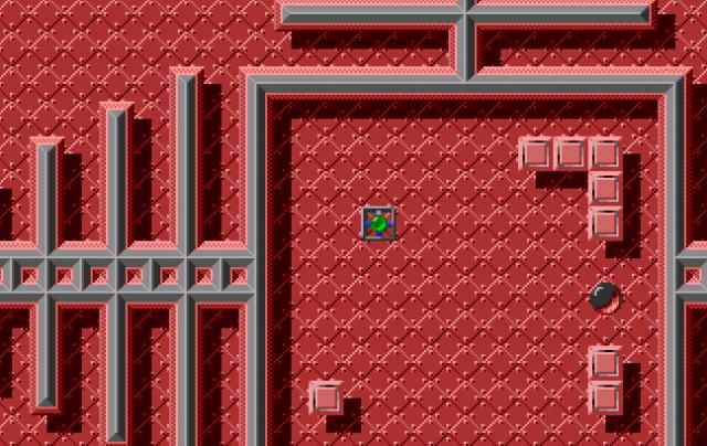 For some reason, mad professors of the future tend to invent strange entertainment games in which every participant dies. Professor Hybrys’ variant is called Titan and involves a ball, a control unit and 80 labyrinths. Your objective is either to destroy all destructible blocks in each level by hitting them with the sphere, or to pilot it to the exit. The black ball is beyond your control; it will bounce straight or diagonally through the labyrinth with constant speed. You move the control unit, a small box, with you are to position in a way that the ball bounces off it in the desired direction. You can also catch the sphere by quickly moving over it, and then release it in a direction of your choice.