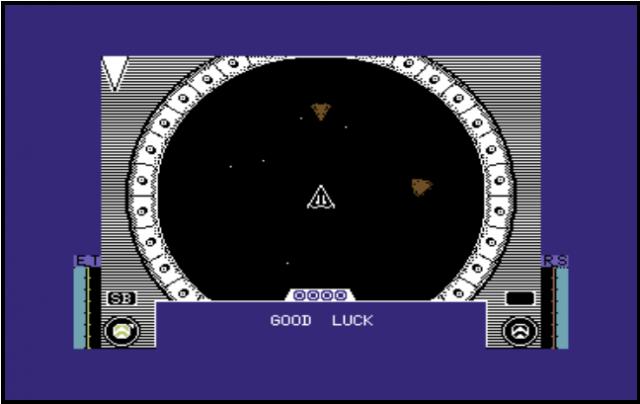 The ship is controlled from a top-down perspective, with four gauges indicating its energy level, temperature, radiation level and shield status. When the radiation level or temperature reach maximum, the ship is destroyed. The ship heats up when it's near a sun or firing weapons. The radiation level rises when radioactive pods are carried. When the ship is running out of fuel, it can be refueled by collecting ore from planets. Two direction finders at the bottom of the screen point towards the next starbase, mission objective or manually chosen target.