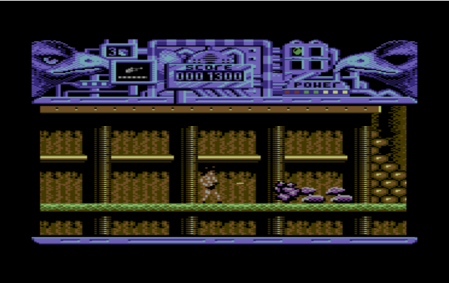 A bi-directional horizontally scrolling platform game, Hawkeye has the player in control of an SLF (Synthetic Life Form) controlled from an underground bunker by the Xamoxians. On each level, the eyes of the hawks in the status panel flash to indicate the direction to travel in to find a puzzle piece. Four pieces are needed to complete the level, but there were also other pickups such as ammo and energy. There were 12 levels to complete plus a hidden bonus level.