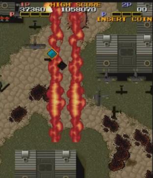 In this ten-stage action video game, your objective is to destroy every assaulting enemy and enemy base you encounter, until every one of them has been eliminated. Each stage has a different setting and difficulty level, you must survive all attacks to reach the tenth stage. Apart from the default 3-way missile shooter, your weapon system is upgraded when you pick up power-ups during the game. The more powerful your weapon system becomes, the more advantage you have over the enemy fleet. You score points each time you kill an assaulting aircraft, and when you gain high points, you gain up to 10 extra bombs which is extremely useful when fighting bosses in advanced stages.