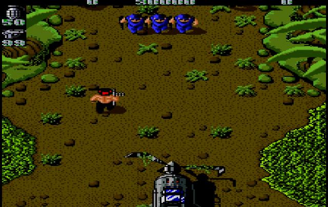 The player begins as one of two commando-type warriors, garbed in red (Ralf) or blue (Clark). They must proceed from the bottom of the screen upwards, towards the village of Ikari. Trying to prevent them from reaching the village are enemy soldiers and other units. Along the way, players may commandeer enemy tanks to help fight their way through the enemy personnel. The tanks are immune to enemy bullets, but have a limited supply of fuel and will sustain damage when it runs out or the tank is caught in an explosion, taking the player with it unless he can exit the tank and get clear before it blows up.