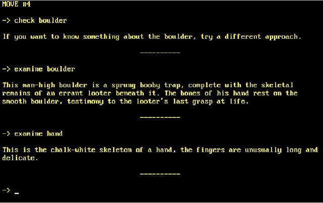 The game relies on a text parser to interpret player commands. This interface can recognize a variety of verbs and nouns, allowing players to perform complex actions. For example, players might type "examine artifact" or "use rope" to interact with their surroundings. The text parser was advanced for its time, offering a rich and engaging experience.