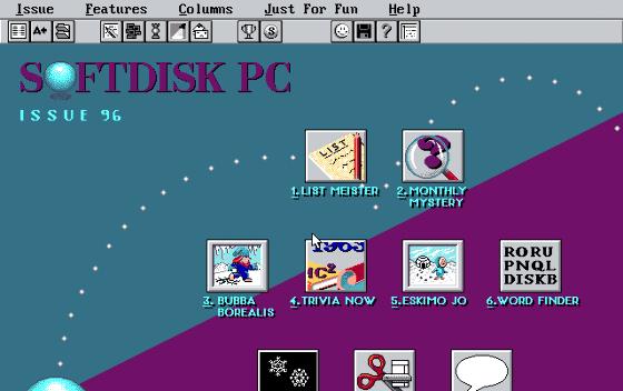 Softdisk PC #96 included various features such as List Meister, Monthly Mystery, Bubba Borealis, Trivia Now, Eskimo Jo, Word Finder, Snowfall Screen Saver, Sounds, Graphics, and TechToon. To relive the experience of playing these games, one can visit Classic Reload, a website that allows users to play classic games online.