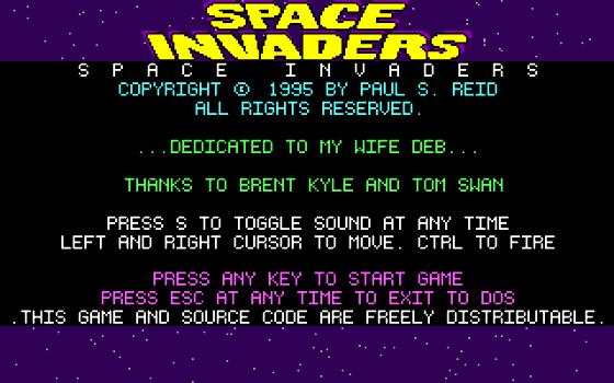 Press any key to start the game. Use left and right arrow keys to move. Press CTRL to fire.
