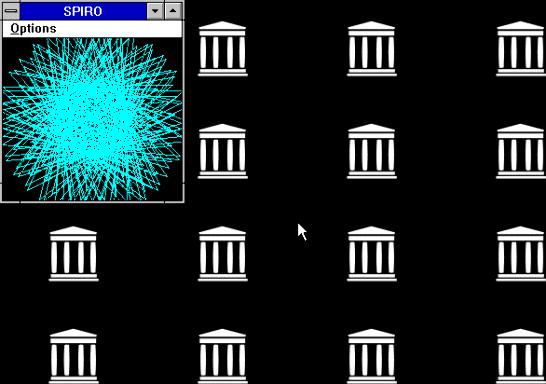 Spiro, also known as Spirograph, creates its unique patterns by drawing several imaginary circles and averaging the integral points. A random set of values is chosen for each circle before each pattern is drawn. The patterns are very pleasing and relaxing to watch, so try it on Classic Reload and have fun.
