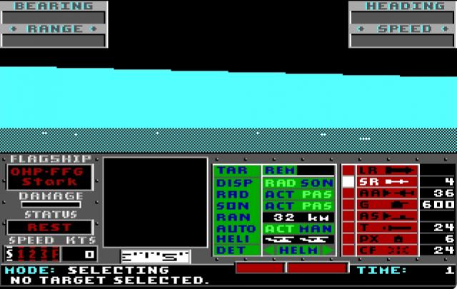The game stands out with its attention to detail in simulating naval warfare, including realistic radar and sonar systems, fuel management, and weapon deployment. Whether you're launching a torpedo strike or fending off aerial assaults, "Strike Fleet" immerses you in the tension and excitement of modern naval combat, all within the classic DOS environment.
