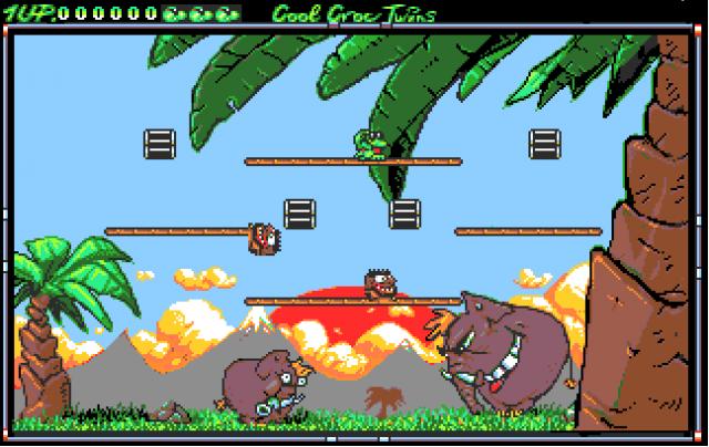 The main characters of the game are Punk and Funk Croc. They are the suitors of the croquette, Daisy. The game is played in a screen by screen and level to level challenges in order to get Daisy. There is a cute introduction to the game with SoundBlaster tunes. If the game is not being played in two-player, a computer plays as the second player.