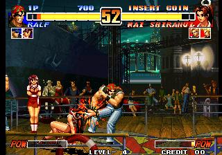 For another year, SNK's flagship series returns. Many of this year's KOF upgrades are in the form of better graphics, sound effects, music, and completely redesigned character sprites. The system's gameplay has been updated with the addition of "Rush" multi-hit combos and new moves for nearly every character. The series' backstory is heavily emphasized in this release, with the Orochi Saga kicking into high gear.