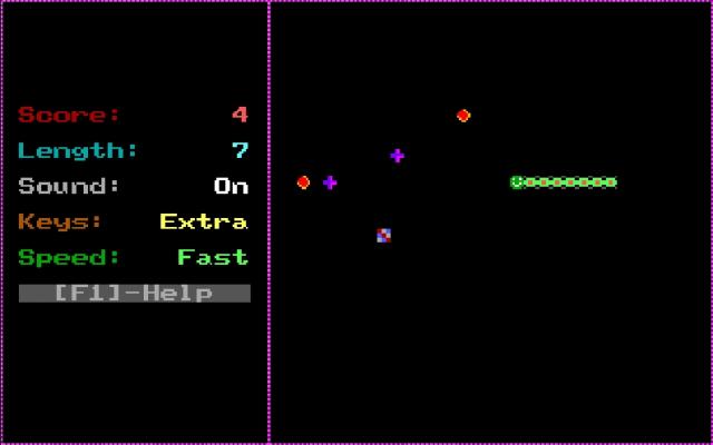 The controls in Viper are simple, using the arrow keys to navigate the snake. The objective is to eat as many items as possible without colliding with the walls or the snake's own body. The game requires quick reflexes and strategic planning, especially as the snake grows longer and the game speed increases.