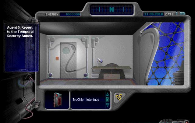 You are Agent 5 of the Temporal Protectorate. When you report to the TSA, you find that someone is changing history, influencing events and happenings, changing how things happened - and not for the better. It is your job to find out who is messing with history, stop him, and restore history. For this you will have to travel time, using the Pegasus, as far as 2 million BC. You will travel to Mars in 2185 to stop attack on an alien vessel, visit the World Science Center in 2310 to stop an assassination, and go back to 2112 to destroy a nuclear missile. You will collect items, solve puzzles, and pit your wits against a giant robot.